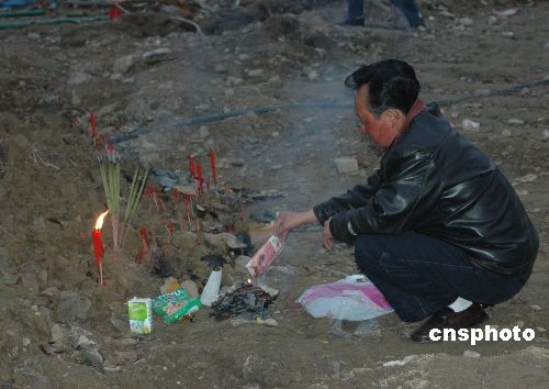 圖:北川中學(xué)廢墟前祭奠孩子的家長(zhǎng)