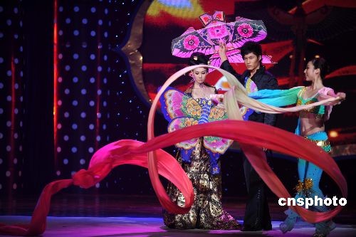 日前,2008第九屆CCTV模特電視大賽緊張進行。經(jīng)過激烈的爭奪曹軼霖和李昕岳分別奪得該賽男女冠軍。本次總決賽暨頒獎晚會還獨具匠心地引入了“非物質(zhì)文化遺產(chǎn)”中的中國元素。中新社發(fā) 廖攀 攝