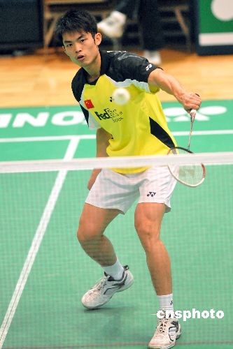 十一月二十六日晚,中國選手林丹在香港伊利沙伯體育館舉行的二零零八香港公開羽毛球超級賽首輪比賽中,以二比零戰(zhàn)勝蘇格蘭選手艾力斯達,成功晉級十六強。中新社發(fā) 鄧慶樂 攝