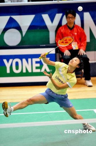 中國香港選手葉姵延在香港伊利沙伯體育館舉行的二零零八香港公開羽毛球超級賽首輪比賽中,以二比零戰(zhàn)勝荷蘭選手姚潔,晉級十六強(qiáng)。中新社發(fā) 鄧慶樂 攝