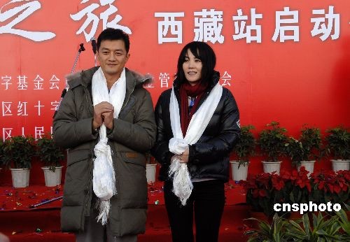 儀式前,中國紅十字基金會副秘書長劉選國和李亞鵬、王菲夫婦到醫(yī)院病房看望了第2008名受助患兒崗瓊尼霞和其他9名住院患者;儀式后,他們帶著禮物和祝福來到貢桑家中,看望術后出院的受助患兒崗拉央金。