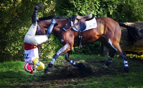 最意外的下馬——10月11日,一位美國(guó)女騎手在比賽中落馬。
