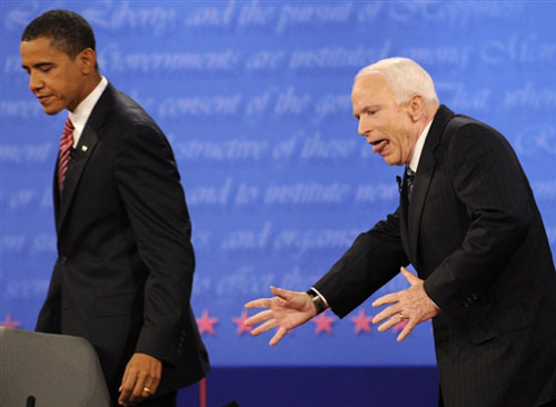 最狼狽的表情——10月16日,麥凱恩在與奧巴馬進(jìn)行最后一場(chǎng)辯論后吐舌頭做了一個(gè)鬼臉。