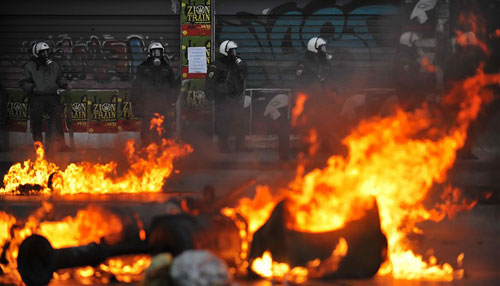 圖:希臘騷亂升級 雅典恍如“戰(zhàn)場”