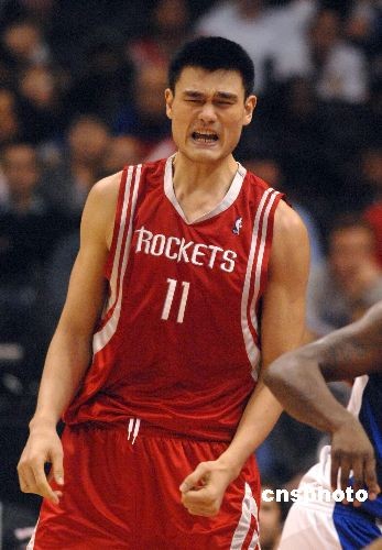 第三節(jié),姚明接連失誤,導(dǎo)致比分迅速拉開(kāi),姚明自己懊惱不已。