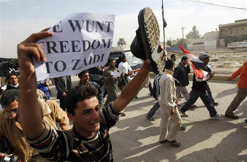 伊拉克千人游行支持飛鞋襲擊布什的"功臣"