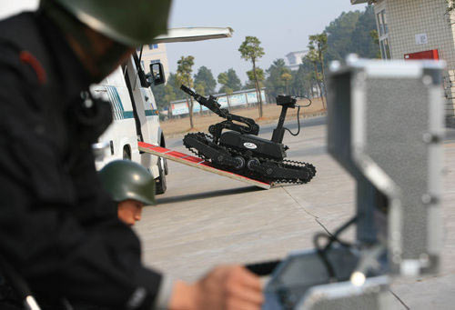 湖北武警反恐演練 機器人搬運“炸彈”(2)