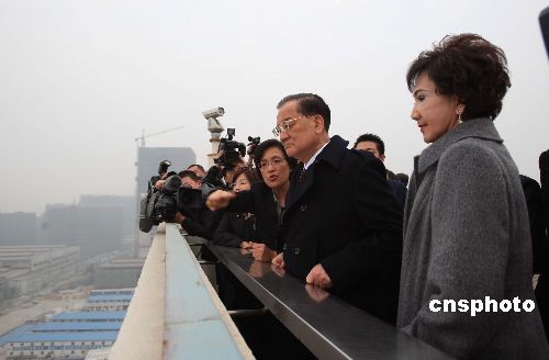 12月20日,中國國民黨榮譽(yù)主席連戰(zhàn)一行訪問上海世博局并俯瞰正在建設(shè)中的世博場館。中新社發(fā) 潘索菲 攝