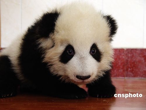 2004年12月拍攝的團(tuán)團(tuán) ,只有三個(gè)月面對(duì)鏡頭膽怯又好奇。中新社發(fā) 何永果 李偉 攝