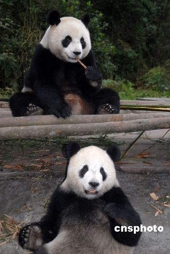 2008年12月,圓圓很貪吃 ,團團:“我的那份竹子呢?”。中新社發(fā) 羅小韻 攝