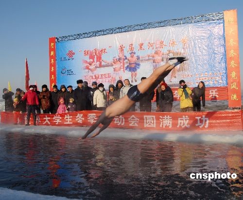 圖:黑河首屆冬泳節(jié)上妙趣橫生的表演(2)