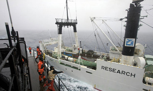 圖:日本捕鯨船遭環(huán)保者“臭彈”襲擊