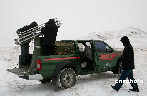 12月27日,新疆哈密人工增雪工作人員在調試人工增雪火箭彈發(fā)射架。中新社發(fā) 蔡增樂 攝