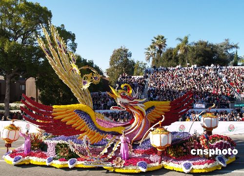 臺(tái)灣中華航空公司的玫瑰花車“火鳳凰”在美國洛杉磯第120屆玫瑰花車游行勇奪大獎(jiǎng)。該主題花車名為“臺(tái)灣燈會(huì)”,花車以中國燈籠和“仙女下凡”為元素,奪人眼球。中新社發(fā) 盧威 攝