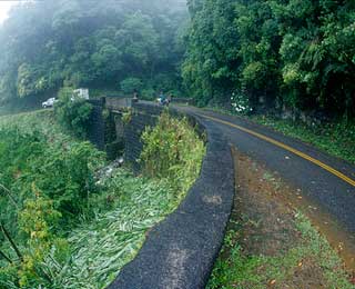 驚險(xiǎn)度:一路上熱帶雨林,長滿苔蘚的橋,偶爾一段鵝卵石鋪起的路段和危險(xiǎn)而光滑的急轉(zhuǎn)彎路段都給行人及車輛增加了難度。
