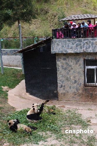 三只來自地震災(zāi)區(qū)四川臥龍的熊貓寶寶思嘉、美茜、芊芊,經(jīng)過云南野生動物園半年的精心照料,已適應(yīng)當(dāng)?shù)氐臍夂颦h(huán)境,成長健康,與園內(nèi)原有的兩只大熊貓歡歡和南南共同迎接新年的到來。