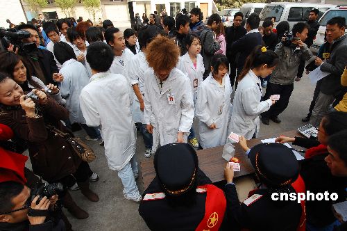 一月七日上午,廣州鐵道部門為番禺一家企業(yè)為外來工提供送春運(yùn)返鄉(xiāng)車票上門服務(wù)。廣鐵集團(tuán)計(jì)劃在四天時間為幾十家企業(yè)上門送票十萬多張。中新社發(fā) 柯小軍 攝