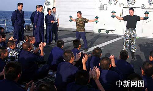 中新網(wǎng)“?凇迸1月9日電,中國(guó)海軍護(hù)航編隊(duì)“?凇碧(hào)導(dǎo)彈驅(qū)逐艦舉行甲板運(yùn)動(dòng)會(huì),以豐富官兵在護(hù)航期間的文體生活,甲板運(yùn)動(dòng)會(huì)共設(shè)六個(gè)比賽項(xiàng)目,分三個(gè)下午舉行,今天首場(chǎng)舉行啞鈴、臂力棒項(xiàng)目的比賽。