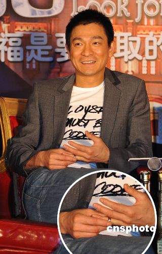 1月13日,由華誼兄弟出品、劉偉強(qiáng)執(zhí)導(dǎo)的浪漫愛(ài)情大片《游龍戲鳳》舉行官網(wǎng)啟動(dòng)儀式。劉德華出席活動(dòng)時(shí)左手無(wú)名指驚現(xiàn)環(huán)形戒指,他在接受訪(fǎng)問(wèn)時(shí)還不停的玩撫戒指,多次摘掉又戴上。中新社發(fā) 李學(xué)仕 攝
