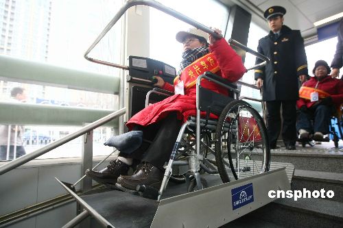 1月16日是北京市第七個(gè)無障礙推動(dòng)日。北京市殘聯(lián)、老齡辦、婦聯(lián)和東城區(qū)殘聯(lián)聯(lián)合組織殘疾人志愿者在東直門交通樞紐現(xiàn)場,體驗(yàn)無障礙出租車及機(jī)場快軌無障礙設(shè)施帶來的方便與快捷。