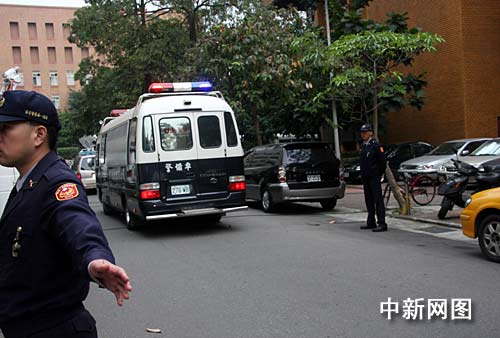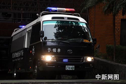 1月19日,臺(tái)北地方法院首次開(kāi)庭審理前臺(tái)灣地區(qū)領(lǐng)導(dǎo)人陳水扁家弊案。傳訊陳水扁到地院準(zhǔn)備程序庭。圖為下午庭審結(jié)束,警備車押著陳水扁離開(kāi)臺(tái)北地院鐵門,返回臺(tái)北土城看守所場(chǎng)景。作者:陳立宇