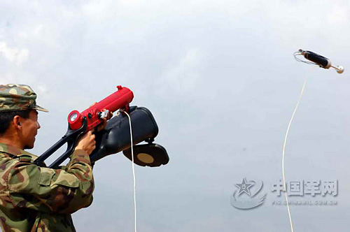 由我國自主研發(fā)采用空氣推進技術生產(chǎn)的,它在一只0.5L氣瓶內(nèi)灌入20Mpa的壓縮空氣,其射程為50~90m,具有體積小,重量輕,安全可靠,攜帶方便等特點,得到掃雷作業(yè)手的鐘愛。