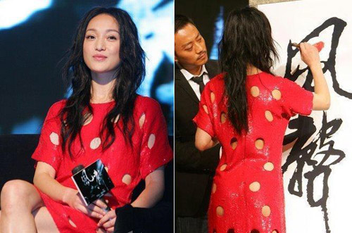 2009年1月15日,北京,電影《風(fēng)聲》的開(kāi)機(jī)發(fā)布會(huì)當(dāng)天舉行。周迅身著紅色“漏洞”裝亮相,演繹“透明人”明艷搶鏡。