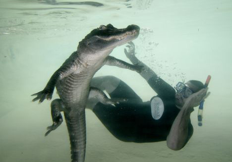 圖:美國男子無任何保護(hù)措施“與鱷共舞”(2)