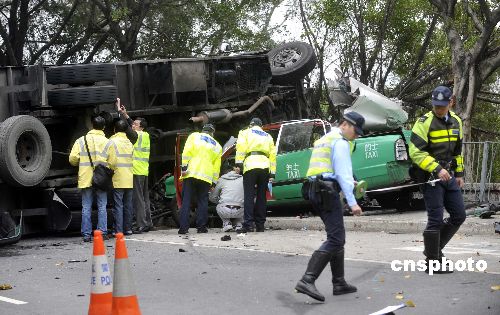 圖:香港落馬洲發(fā)生嚴(yán)重車禍 六人死亡(4)