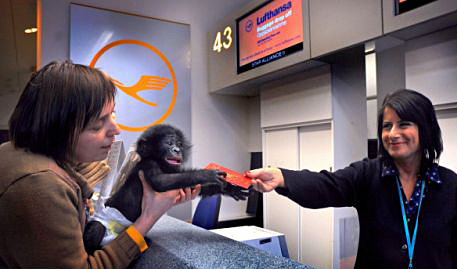 中新網(wǎng)1月23日電 據(jù)英國(guó)媒體報(bào)道,一只小猩猩攜帶自己的“護(hù)照”從英國(guó)伯明翰機(jī)場(chǎng)出發(fā)前往德國(guó)法蘭克福,并在那里的一個(gè)動(dòng)物園安家落戶。這本“護(hù)照”其實(shí)是它的進(jìn)出口證明文件。