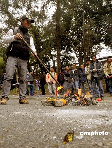 圖為死者的親朋及工友在車禍現(xiàn)場路祭。中新社發(fā) 鄧慶樂 攝