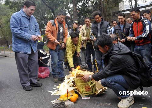 圖為死者的親朋及工友在車禍現(xiàn)場路祭。中新社發(fā) 鄧慶樂 攝