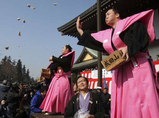 2月3日,在日本靜岡縣熱海市舉行了“撒豆子”儀式,炒熟的黃豆在日本被稱為“福豆”,儀式主辦方請(qǐng)來名人站在高處,將炒熟的黃豆拋向人群,以驅(qū)邪迎福,祈愿身體健康。