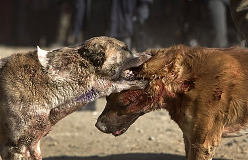 斗狗大賽:阿富汗舉行的斗狗大賽,數(shù)千名當?shù)厝司奂诳Σ紶柦纪庥^看該項比賽。