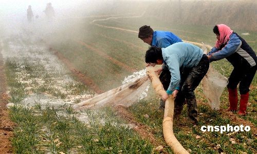 河南洛陽(yáng)自2008年10月下旬以來(lái),沒(méi)下過(guò)一場(chǎng)“透雨”,降水量較常年同期減少近八成,全市農(nóng)作物受旱面積達(dá)260萬(wàn)畝,其中有30萬(wàn)畝麥苗枯黃。13座大中型水庫(kù)蓄水量不足常年的一半。7.3萬(wàn)人飲水嚴(yán)重困難,1.1萬(wàn)人靠送水解決飲水問(wèn)題。全市先后投入抗旱資金2500余萬(wàn)元,抓緊抗旱。