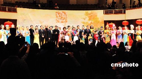 由國務(wù)院僑辦主任李海峰率領(lǐng)的“文化中國·四海同春”藝術(shù)團(tuán),當(dāng)?shù)貢r間2月4日晚在華盛頓成功演出,當(dāng)?shù)厝A僑華人千余名觀眾演出結(jié)束后簇?fù)砦枧_久久不肯散去。國僑辦主任李海峰、中國駐美大使周文重夫婦走上舞臺和演員們合影。