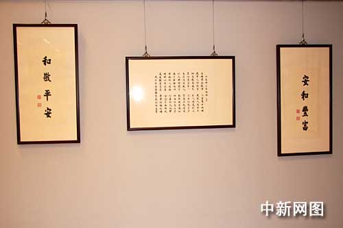 臺灣法鼓山創(chuàng)辦人圣嚴(yán)法師三日圓寂,四日移靈金山法鼓山世界佛教教育園區(qū)大殿供信眾瞻仰,圖為法鼓山現(xiàn)正展出的圣嚴(yán)法師墨寶。中新社記者:陳立宇 攝