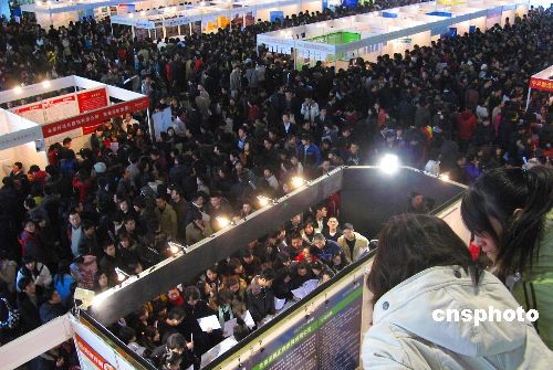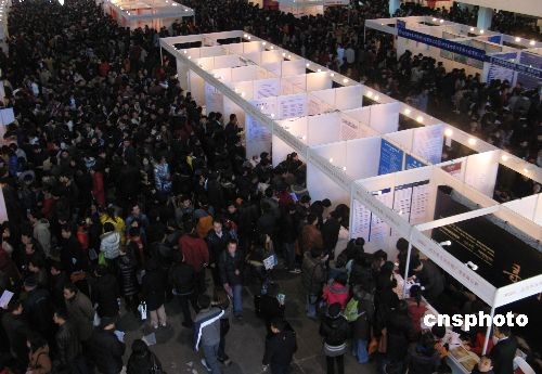 2月7日,一年一度的北京最大規(guī)模招聘盛會——“北京‘共創(chuàng)未來’大型人才招聘會”在中國國際展覽中心舉行。本次大會由北京多家人才聯(lián)合主辦,設(shè)立展位近千個(gè),展會開放四個(gè)展館,2號館為IT、電子、通訊專館,3號館為建筑房地產(chǎn)、現(xiàn)代制造業(yè)、生物醫(yī)藥及廣告?zhèn)髅綄p^,4號館、8B號館為綜合招聘館。在京10萬高校畢業(yè)生前往應(yīng)聘。