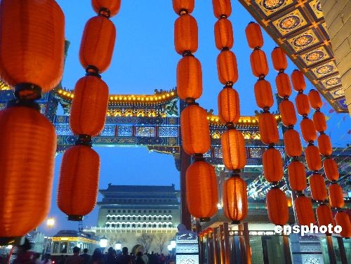 2009年2月8日,農歷正月十四,千余盞大紅燈籠及中國結將北京前門大街妝扮出濃郁的節(jié)日氣氛。中新社發(fā) 玉龍 攝