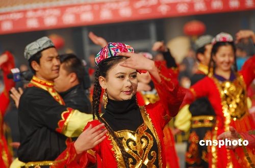 2009年2月9日,新疆塔克拉瑪干沙漠腹地邊城和田鑼鼓喧天,萬民歡騰,各族兒女身披節(jié)日的盛裝,載歌載舞,在和田市廣場舉行大型社火活動,表達(dá)和田各族人民的美好祝愿。