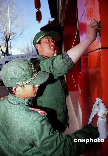 2月25日是西藏傳統(tǒng)藏歷新年。藏歷新年來臨之際,西藏總隊(duì)官兵紛紛走上街頭,打掃衛(wèi)生、清理城市牛皮癬、為城市美容。中新社發(fā) 常鈞 攝
