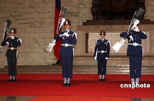 2月21日,臺灣“中正紀(jì)念堂”儀仗隊(duì)正在進(jìn)行精彩的表演。自1月24日恢復(fù)儀仗隊(duì)表演以后,紀(jì)念堂內(nèi)游客大增。中新社發(fā) 陳立宇 攝