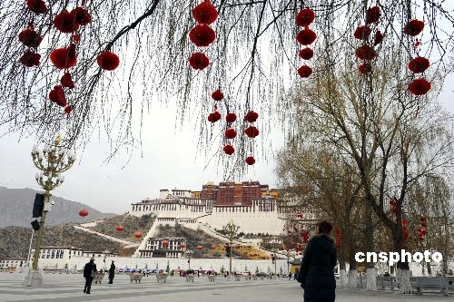 2月23日,西藏自治區(qū)首府拉薩市布達(dá)拉宮廣場張燈結(jié)彩喜迎藏歷新年,高原古城拉薩洋溢著濃郁的節(jié)日氣氛。中新社發(fā) 廖攀 攝