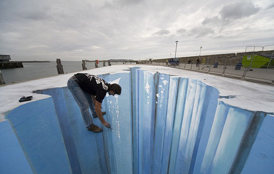 組圖:藝術(shù)家街頭大玩3D 街道頓成"深淵"(4)