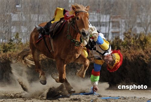 2月27日,中國藏歷年初三,拉薩賽馬場,傳統(tǒng)賽馬與表演活動舉行,騎馬拾哈達等項目表演得精彩絕倫。