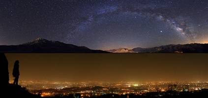 “夜空下的世界”項(xiàng)目的另外一重要目標(biāo),就是提醒人類注意城市燈光污染。現(xiàn)在城市明亮的燈光已讓人們很難看到夜空中的星星。本圖上半部分的弧形,其實(shí)就是伊朗北部上空的銀河,而下半部分則是燈光污染的德黑蘭。耀眼的燈光在照亮世界的同時也帶來了燈光污染,太亮的燈光可能導(dǎo)致居民無法安睡、司機(jī)駕車炫目等。對天文學(xué)家和天文愛好者來說,眾多的強(qiáng)亮光還嚴(yán)重影響他們觀測星空。世界多個國家已經(jīng)開始與燈光污染作斗爭,比如在一些新開發(fā)的地區(qū),要求安裝不正對空中的燈光裝置,鼓勵夜晚照明燈光全部射向地面。