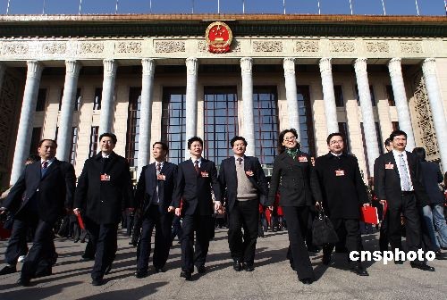 3月13日,第十一屆全國人民代表大會第二次會議在人民大會堂閉幕,代表們滿面春風(fēng)地步出人民大會堂。中新社發(fā) 杜洋 攝