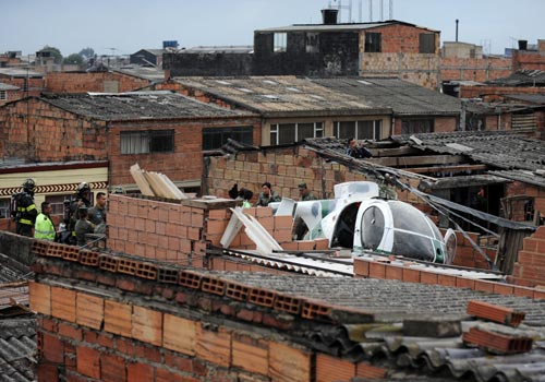 圖:哥倫比亞一警用直升機(jī)墜入民房