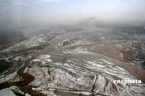 黃河內(nèi)蒙古河段冰凌區(qū)。中新社發(fā) 尤中原 攝
