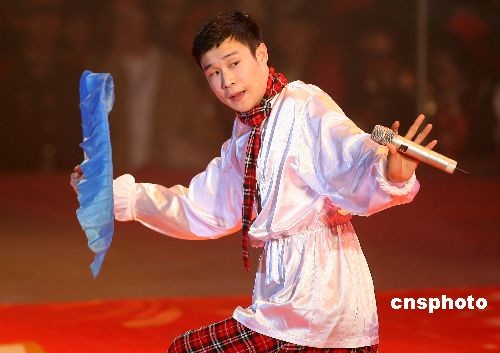 2009年3月20日,小沈陽現(xiàn)場(chǎng)演出會(huì)“小沈陽之夜”在濟(jì)南舉行。小沈陽和他的親密搭檔——妻子沈春陽在山東省體育館為觀眾奉獻(xiàn)一臺(tái)精彩的演出。中新社發(fā) 王鋒鋒 攝